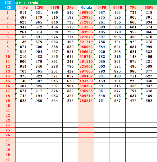 - Kerala Lottery Result Chart 2019